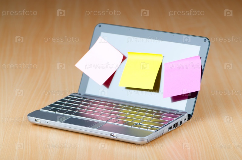 Нетбук с прикрепленными памятками