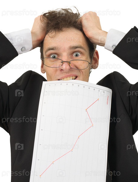 Бизнесмен в ужасе из-за больших проблем с финансами