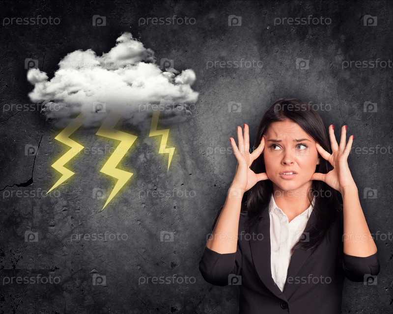 Невный бизнесмен с грозой