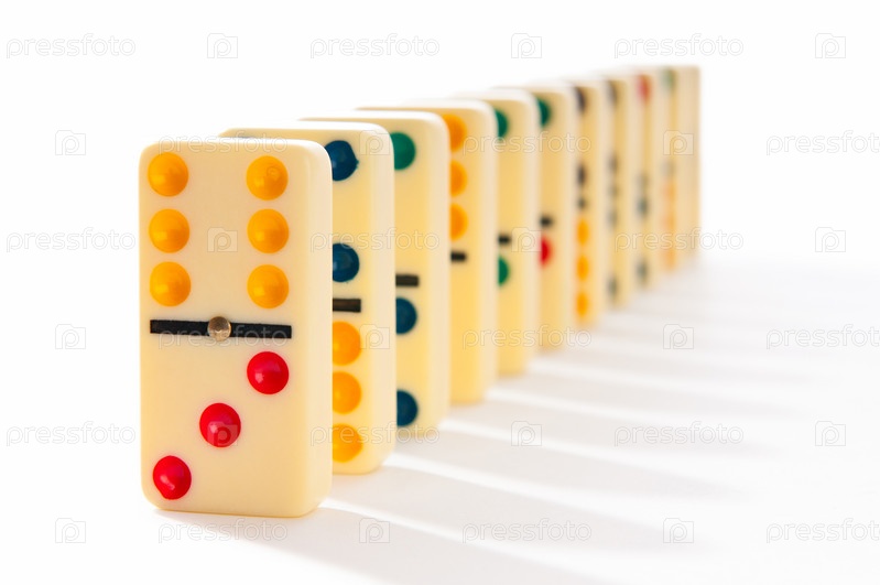 Ряд домино на белом фоне