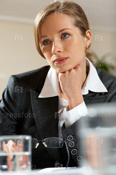 Портрет задумчивой деловой леди