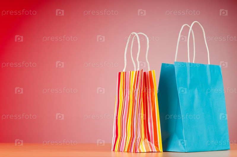 Цветные бумажные пакеты на градиентном фоне