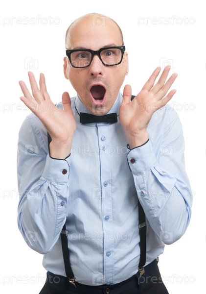 Удивленный лысый парень