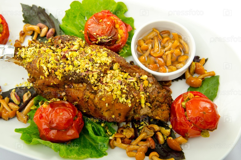 Жареная индейка на тарелке