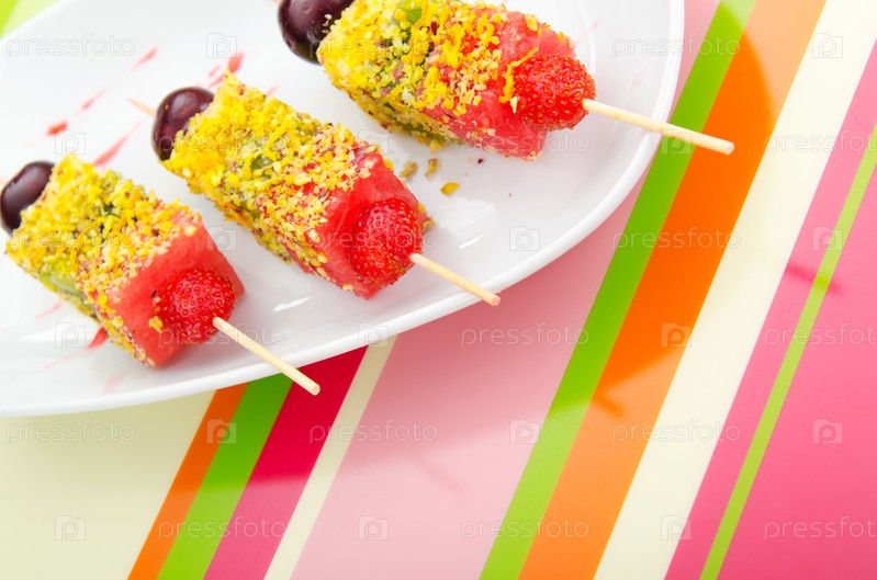 Фруктовый десерт на тарелке