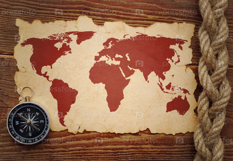 Веревка, компас и карта крупным планом