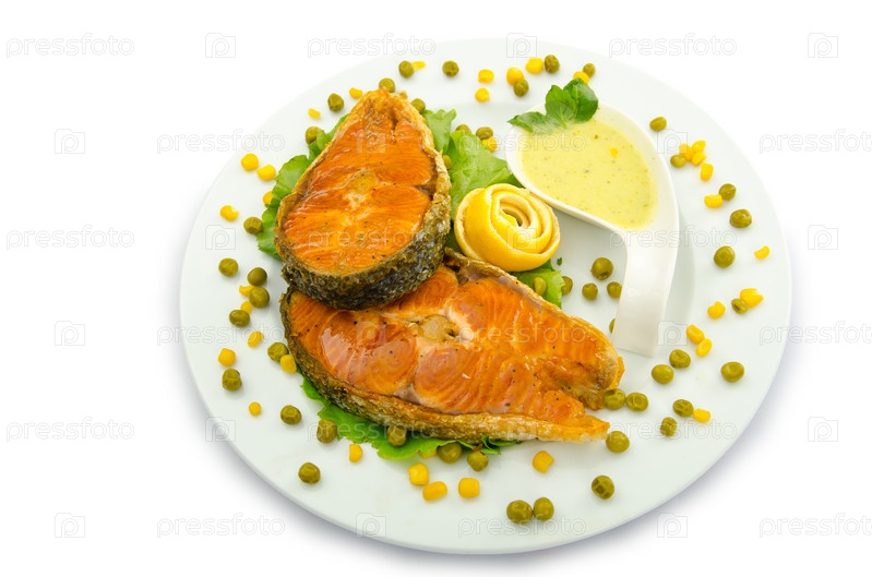 Жареный лосось на тарелке