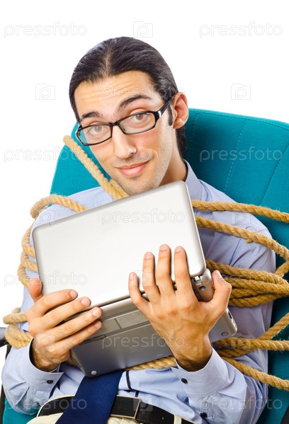 Молодой предприниматель связан веревкой