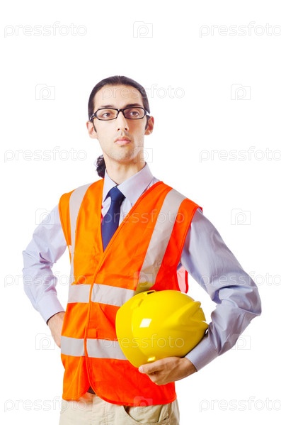Молодой строитель с каской