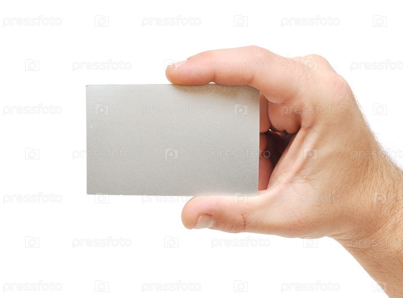 Крупный план руки бизнесмена с визитной карточкой на белом