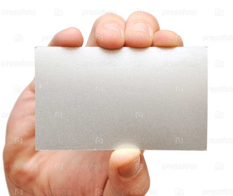 Крупный план руки бизнесмена с визитной карточкой на белом