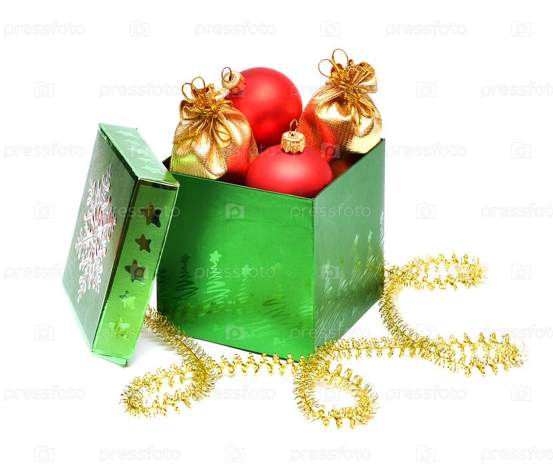 Рождественские шары в подарочной коробке на белом