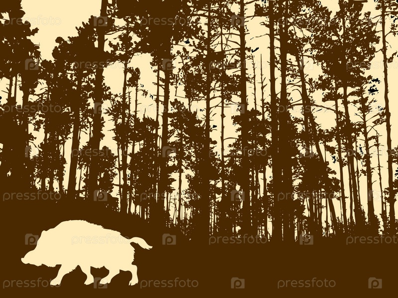 Силуэт кабана на фоне леса, иллюстрация