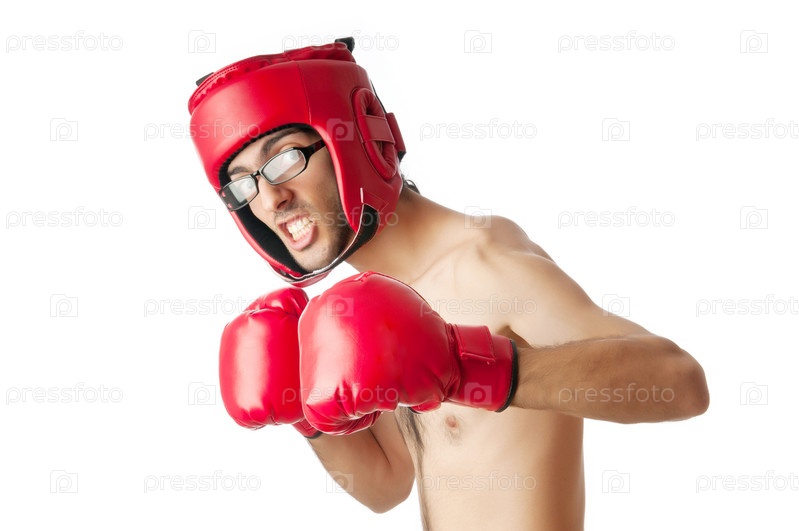 Молодой боксер на белом фоне