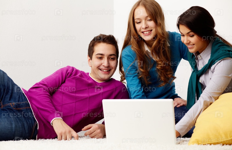 Трое друзей с ноутбуком