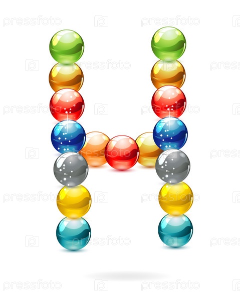 Английская буква H из цветных кругов на белом фоне