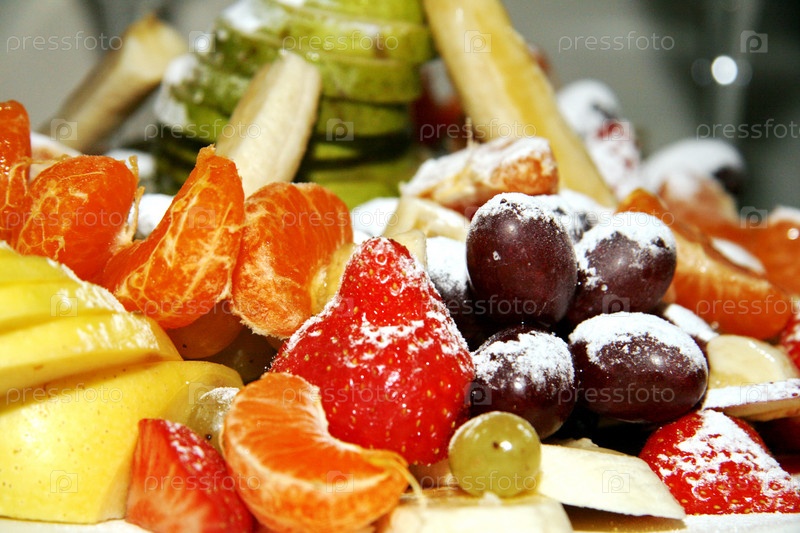 Разнообразие фруктов с сахарной пудрой
