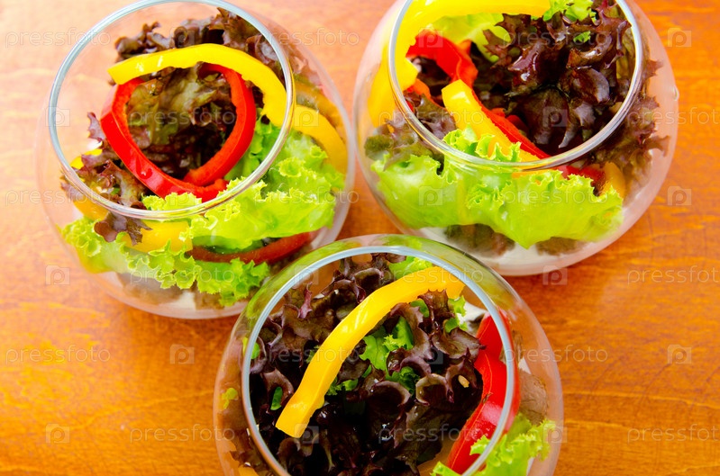 Свежие салаты в мисках