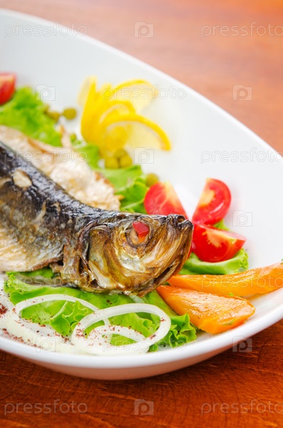 Жареная рыба в тарелке