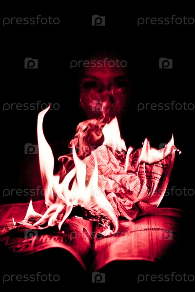 Молодая девушка сжигает книгу