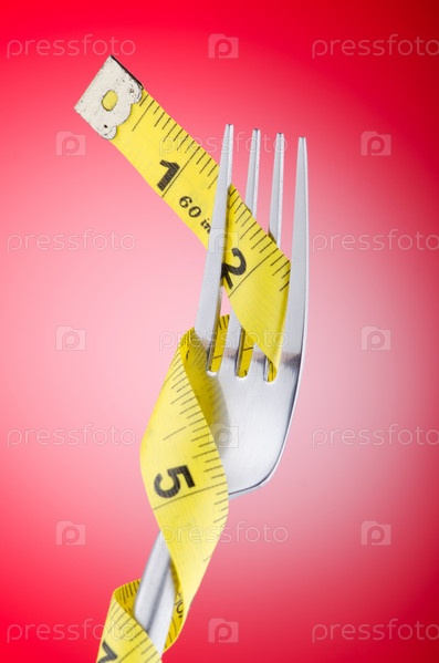 Вилка и сантиметр на красном фоне