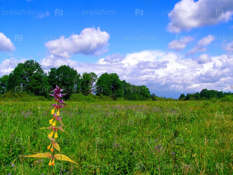 Цветок в поле, летний пейзаж