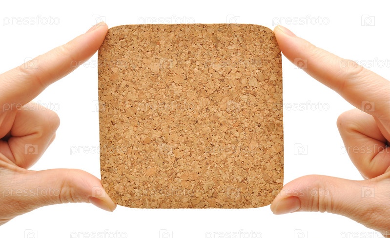 Пробковая панель в руке, на белом фоне
