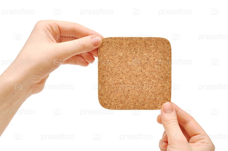Пробковая панель в руках, на белом фоне