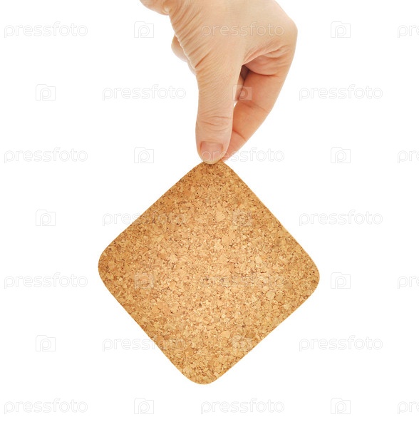 Пробковая панель в руке, на белом фоне