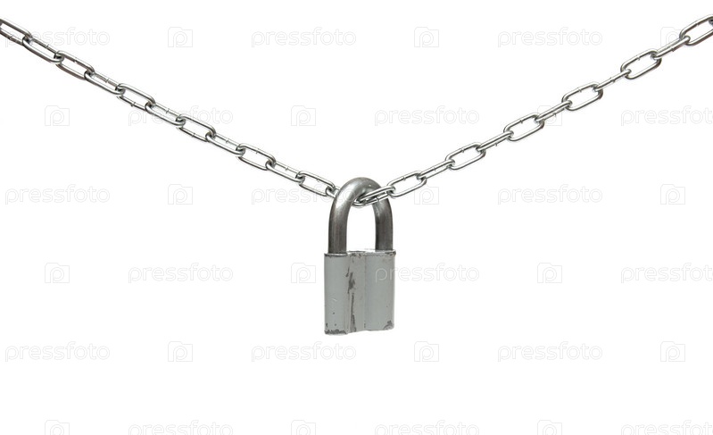 Замок и цепь на белом фоне