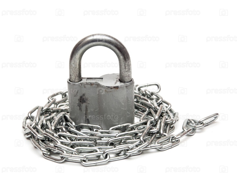 Замок и цепь на белом фоне