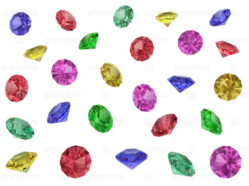 Несколько многоцветных faceted драгоценные камни изолированы на белом. высокое разрешение 3D-изображение