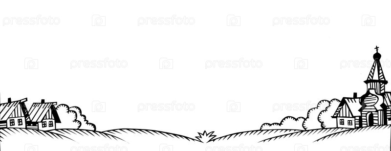 Иллюстрация "Сельский пейзаж" на белом фоне