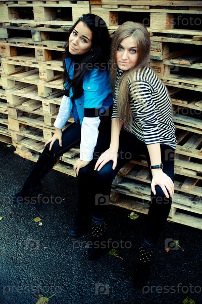 Две девушки фоне ящиков