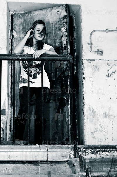 Портрет брюнетки в белой футболке. Черно-белый