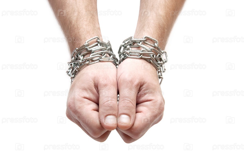 Руки, связанные цепью, изолированы на белом фоне