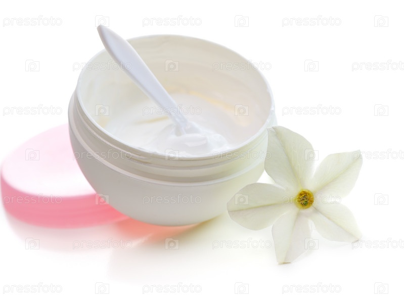 Крем для лица с цветком на белом фоне