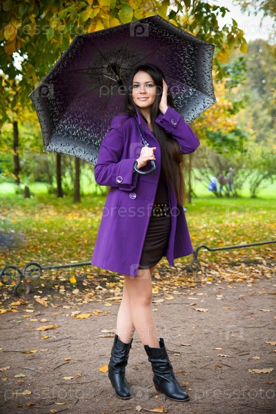 Молодая девушка под зонтом в осеннем парке