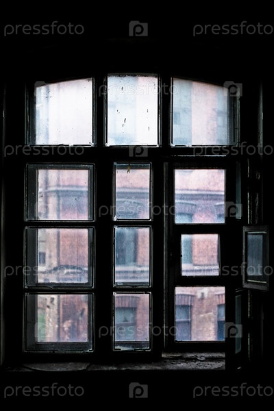 Старое окно с видом на здание