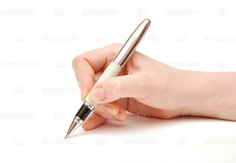 Женская рука с ручкой, на белом фоне