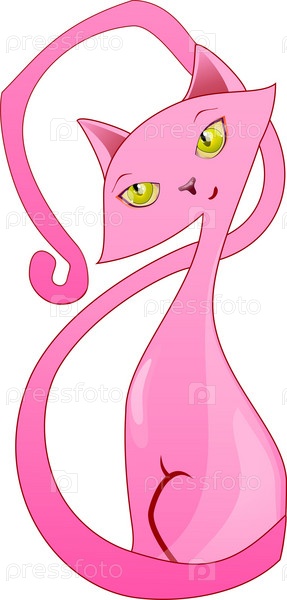 Нарисованная розовая кошка