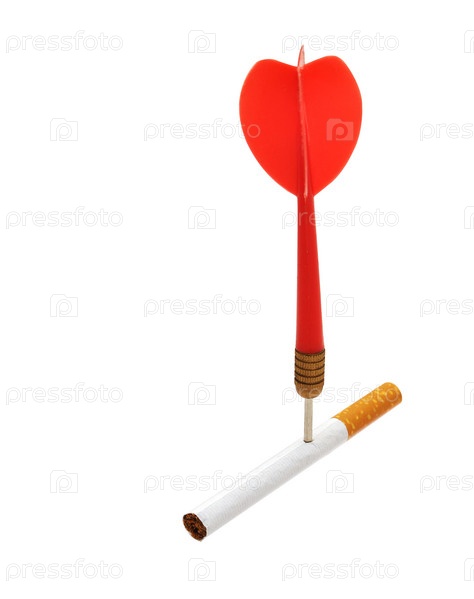 Дротик для дартса и сигарета на белом