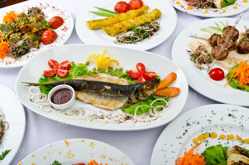 Блюда на сервированном столе