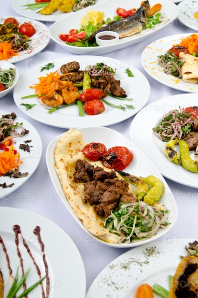 Блюда на сервированном столе