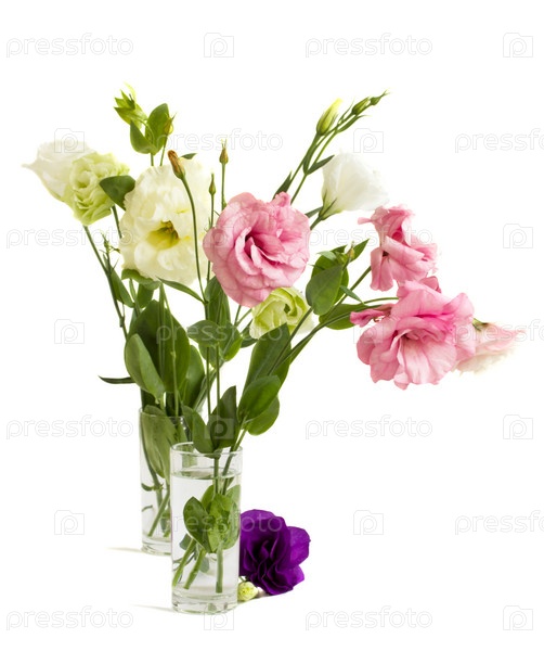 Цветы эустомы на белом фоне