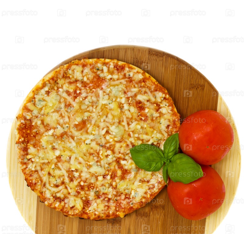 Пицца из четырех видов сыра и свежие помидоры