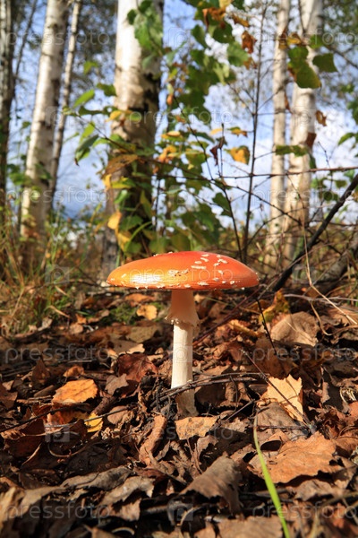 Мухомор в березовом лесу