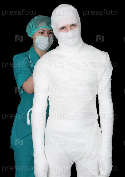 Забинтованный человек и медсестра