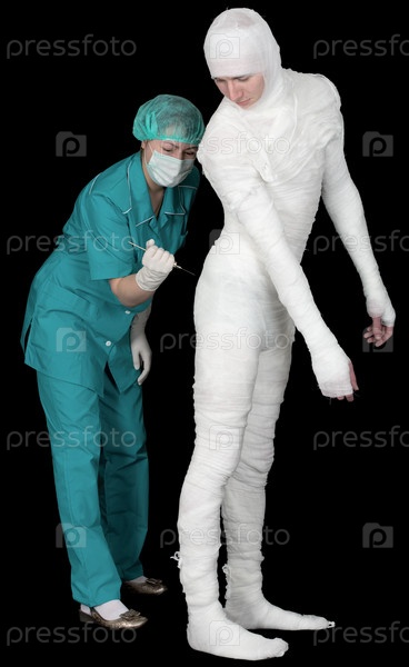 Забинтованный человек и медсестра с инъекцией