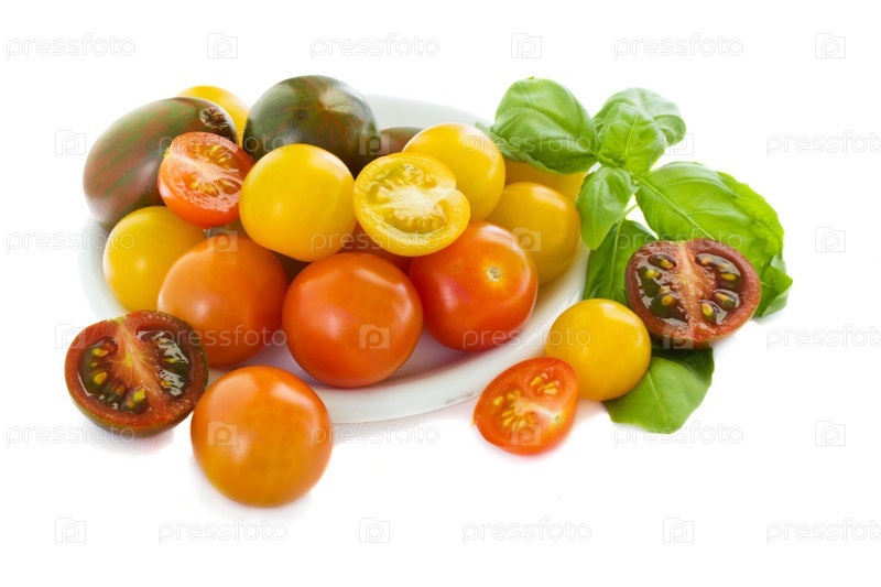 Разноцветные помидоры черри, изолированные на белом фоне
